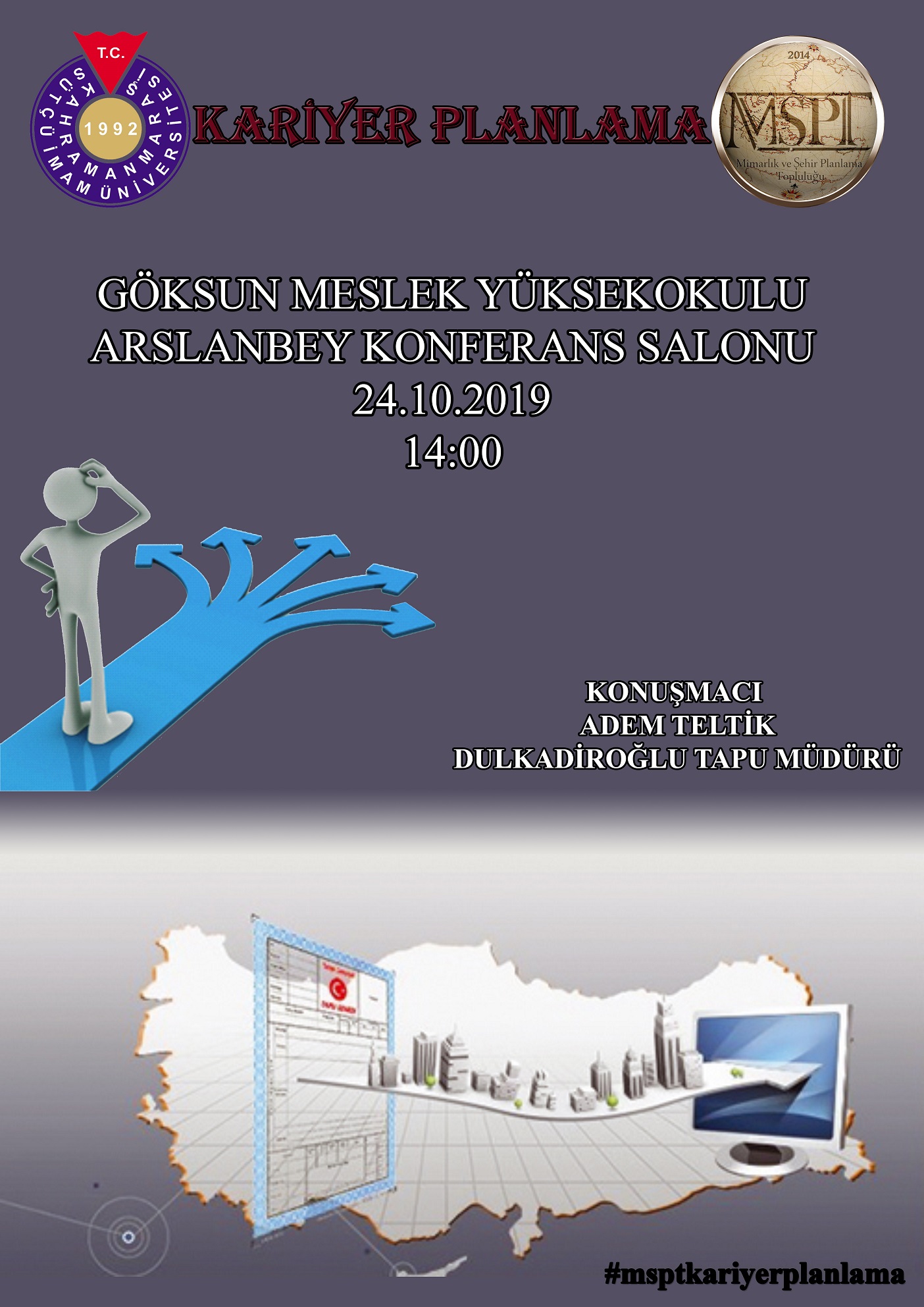 Harita ve Kadastro Programı, kamu kuruluşlarının harita ve inşaat işleri yapan birimleri ile özel şirketlerin kadastral harita, baraj, yol, sulama, elektrik hattı, kentsel ve kırsal alan düzenlemeleri gibi projelerin alt yapısını oluşturan hali hazır ve imarlı haritaların yapımı işlerinde çalışabilecek teknik bilgi ve beceriye sahip harita teknikerleri yetiştirmek amacı ile kurulmuştur. Önlisans eğitimini başarıyla tamamlayan öğrencilere “Harita Kadastro Teknikeri” ünvanı verilir. Program Meslek Yüksekokullarından Lisans eğitimine geçişe uygundur. İki yıllık eğitim sonunda mezun olan öğrenciler, Dikey Geçiş Sınavı (DGS) ile Üniversitelerin Jeodezi ve Fotogrametri, Harita ve Geomatik Mühendisliği lisans bölümlerine geçiş yapabilmektedirler. Çalışma Ortamı ve Koşullar:Harita Kadastro teknikerleri görevlerini hem büroda hem de açık havada yürütürler. İşyerinin durumuna göre topograflar, jeodezi ve fotogrametri (harita ve kadastro), jeoloji, inşaat, maden, çevre, orman, petrol mühendisleri, mimarlar, şehir ve bölge planlamacılarla işbirliği halinde çalışırlar.Haritası yapılacak araziyi çeşitli açılardan inceler.Arazinin çeşitli aletlerle ölçümünü yapar, harita ve krokilerini çizer.Büroda arazi ölçüm sonuçlarını değerlendirerek bilgisayar programları ile gerekli hesaplamaları yapar.Haritalar üzerinde gerekli düzeltmeler ve renklendirmeler yapar.Meslekte İlerleme Durumu ve Çalışma Alanları:İş alanları Çevre ve Şehircilik Bakanlığı, Gıda Tarım ve Hayvancılık Bakanlığı, Orman ve Su İşleri Bakanlığı, Ulaştırma, Denizcilik ve Haberleşme Bakanlı...